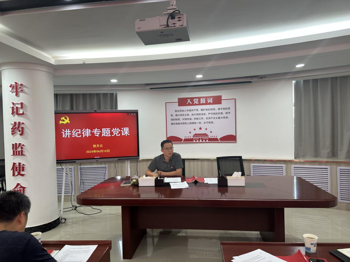 近日,自治区药品安全技术查验中心党支部以“学纪、知纪、明纪、守纪”为主题开展了一次党纪学习教育专题党课,副书记、副主任狄天云同志为中心党员干部讲授党课,支部共计12名党员参加了党课学习。
