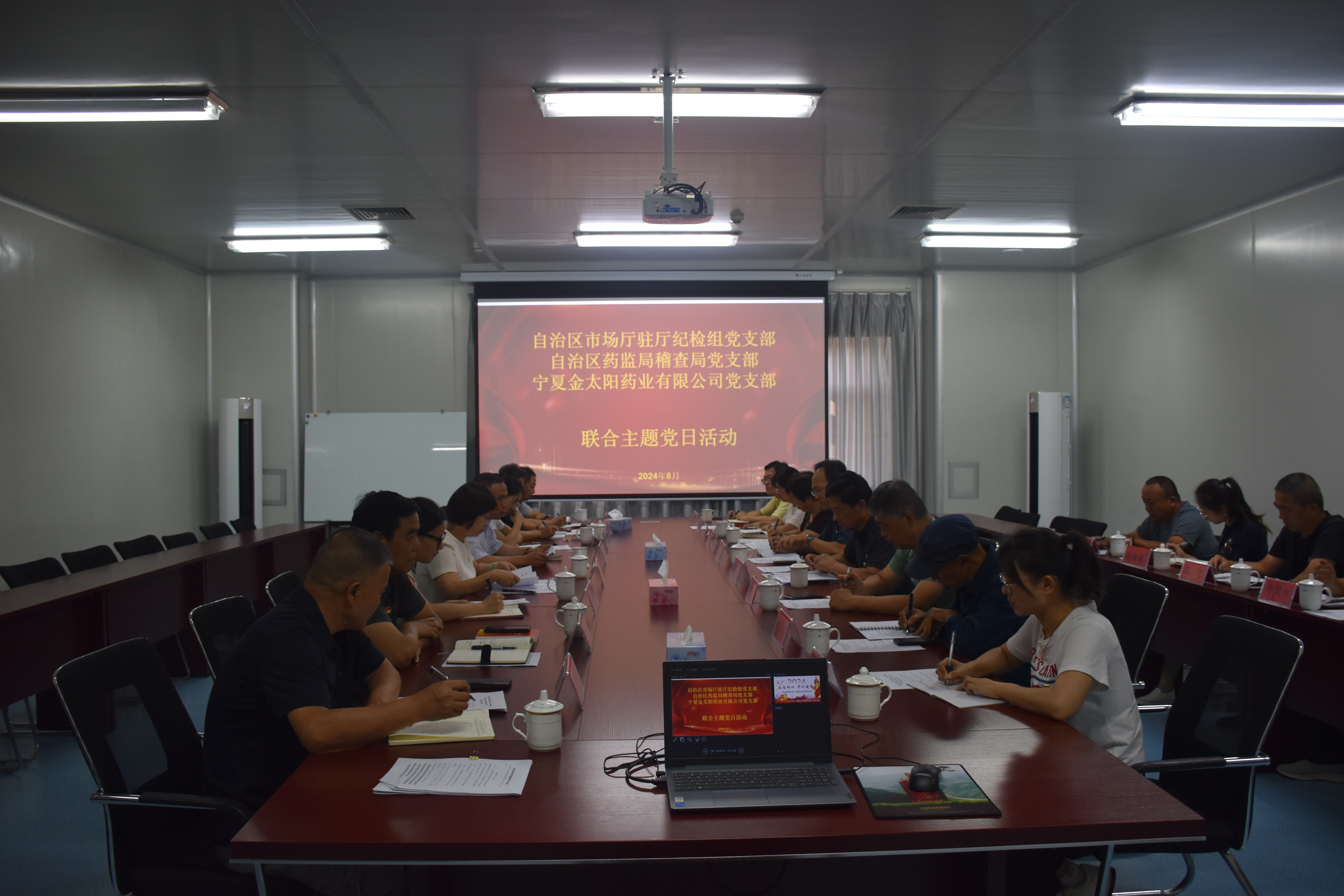 8月29日,bwin中文 稽查局党支部、自治区市场监管厅驻厅纪检监察组党支部、宁夏金太阳药业有限公司党支部联合开展支部主题党日活动。