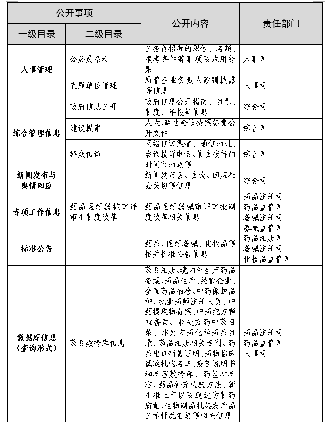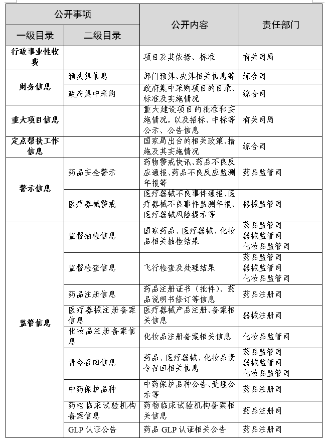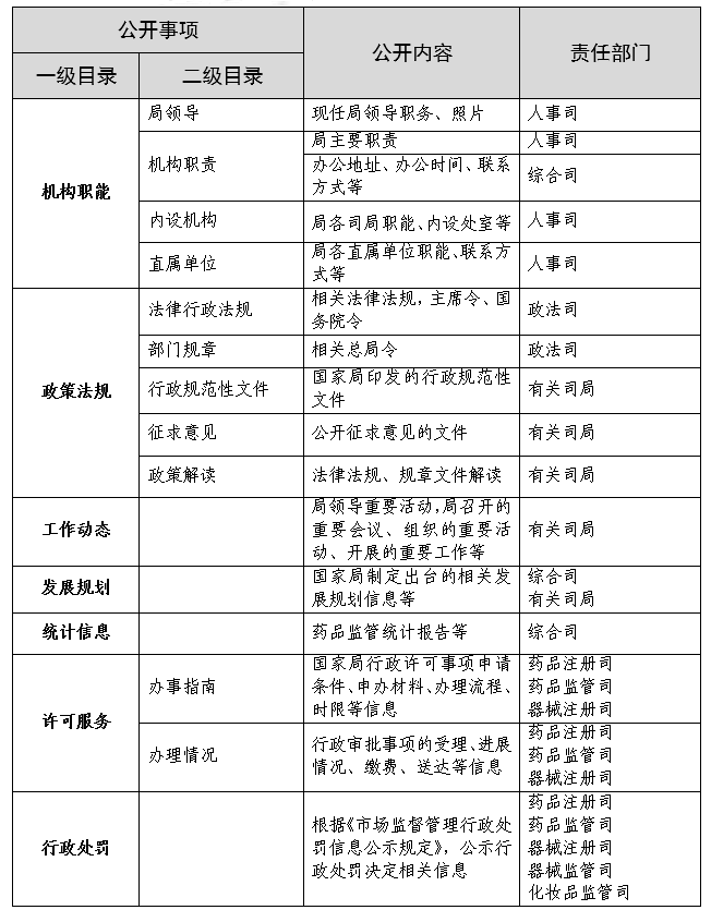 国家药品监督管理局政府信息主动公开基本目录